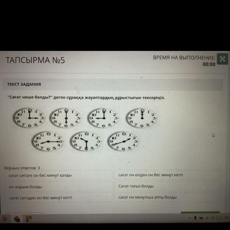 "Сағат неше болды?" деген сұраққа жауаптардың дұрыстығын тексеріңіз.