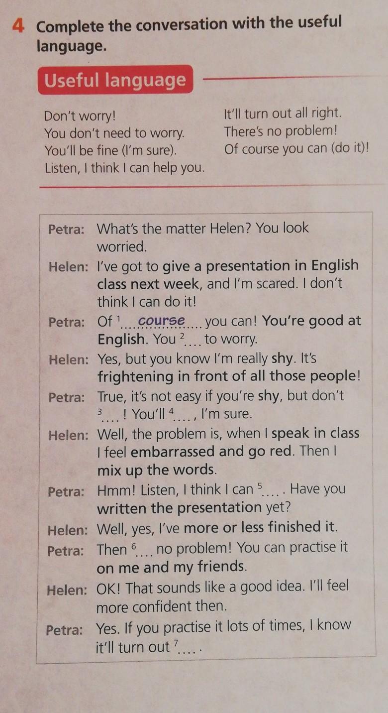 4 Complete the conversation with the useful