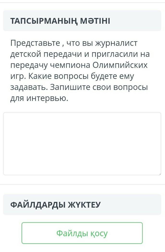 Представьте, что вы журналист детской передачи и пригласили на передачу чемпиона Олимпийских игр. Какие вопросы будите ему задавать. Запишите свои вопросы для интервью.