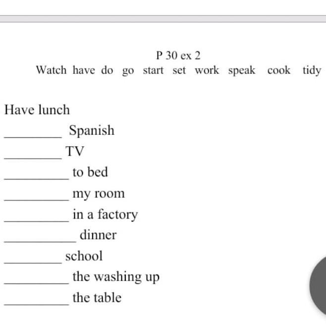 Do the washing up (Вот здесь вот не знаю точно)