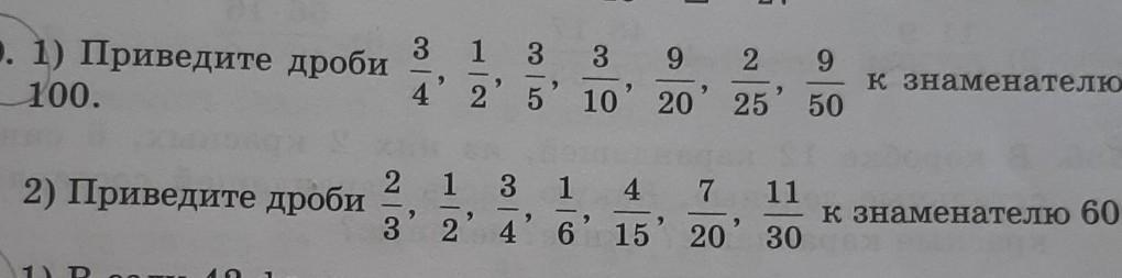 Нужно умножить каждый числитель и знаменатель на определённое число, чтобы в знаменателе получилось число "100".