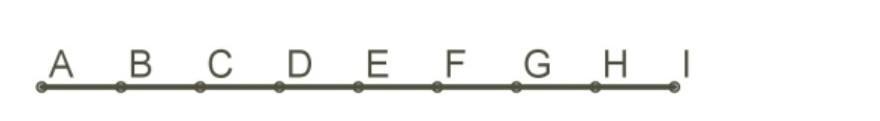 Точки B, C, D, E, F, G и H делят отрезок AI на равные части