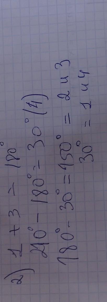 сори за непонятное решение но угол 1 и угол 4 =30° а угол 2 и угол 3 = 150° как я понял , но это не точно , а 1 я не понял а 3 хз какое номер
