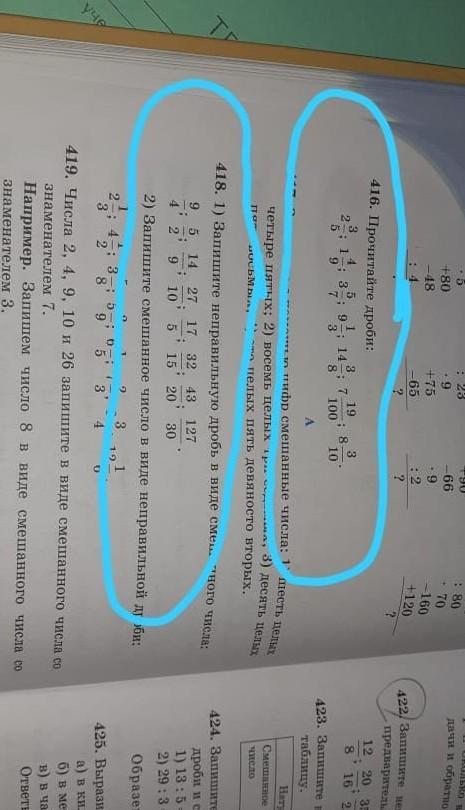 Две целых три пятых, одна целая четыре девятых, три целых пять седьмых, девять целых одга третья, четырнадцать целых три восьмых, семь целых девятнадцать сотых, восемь целых три десятых