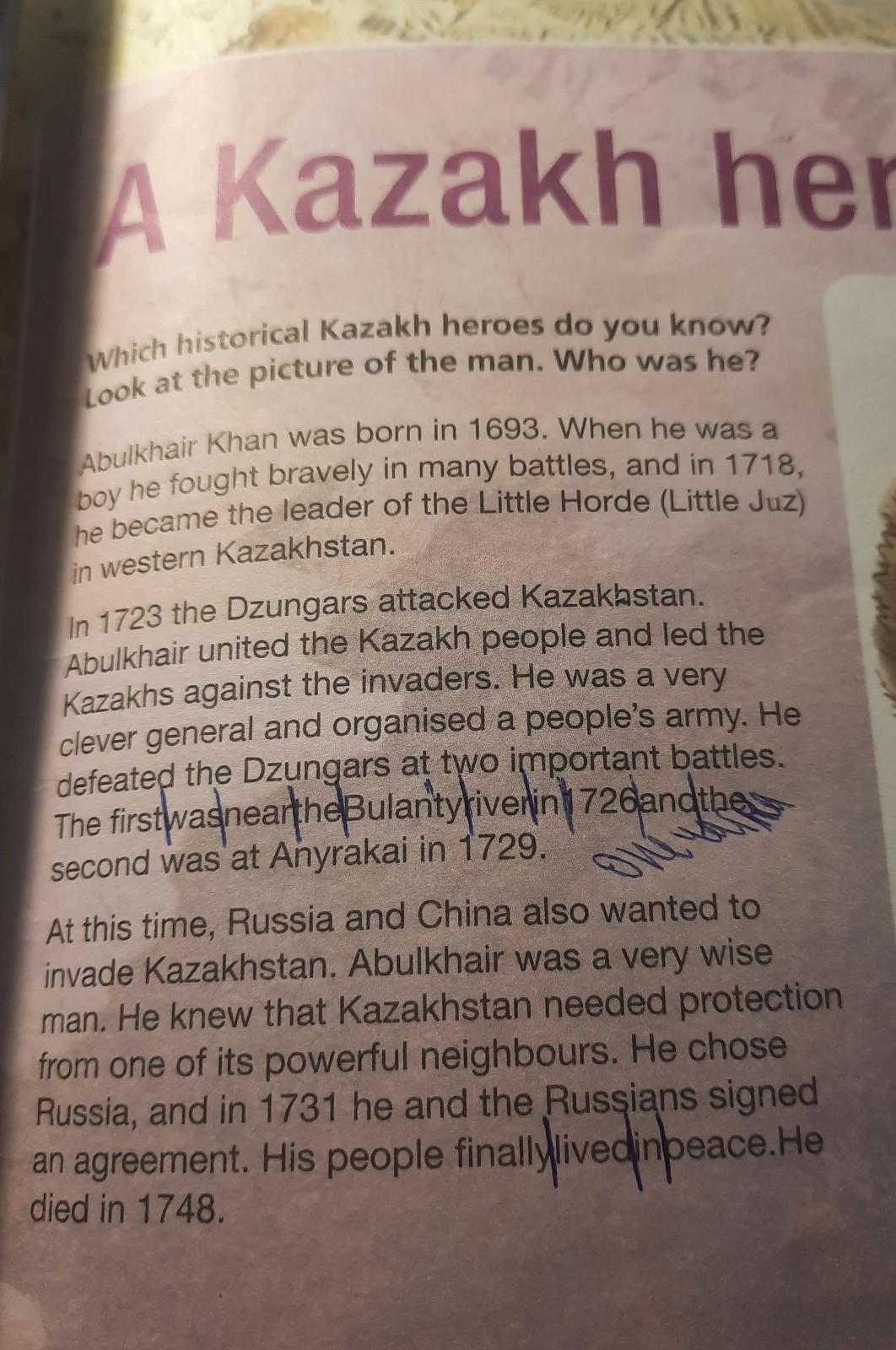 В это время, Россия и Китай хотели захватить Казахстан. Абылхайыр был очень мудрый. Он знал что Казахстан нуждается в защите от одного из его мощных соседей. Он выбрал Россию и в 1731 году он и русские подписали соглашение. Его люди наконец жили в мире, Он умер в 1748 году.