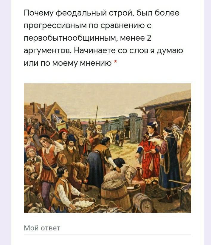 Почему феодальный строй, был более прогрессивным по сравнению с первобытнообщинным, менее 2 аргументов. Начинаете со слов я думаю или по моему мнению *