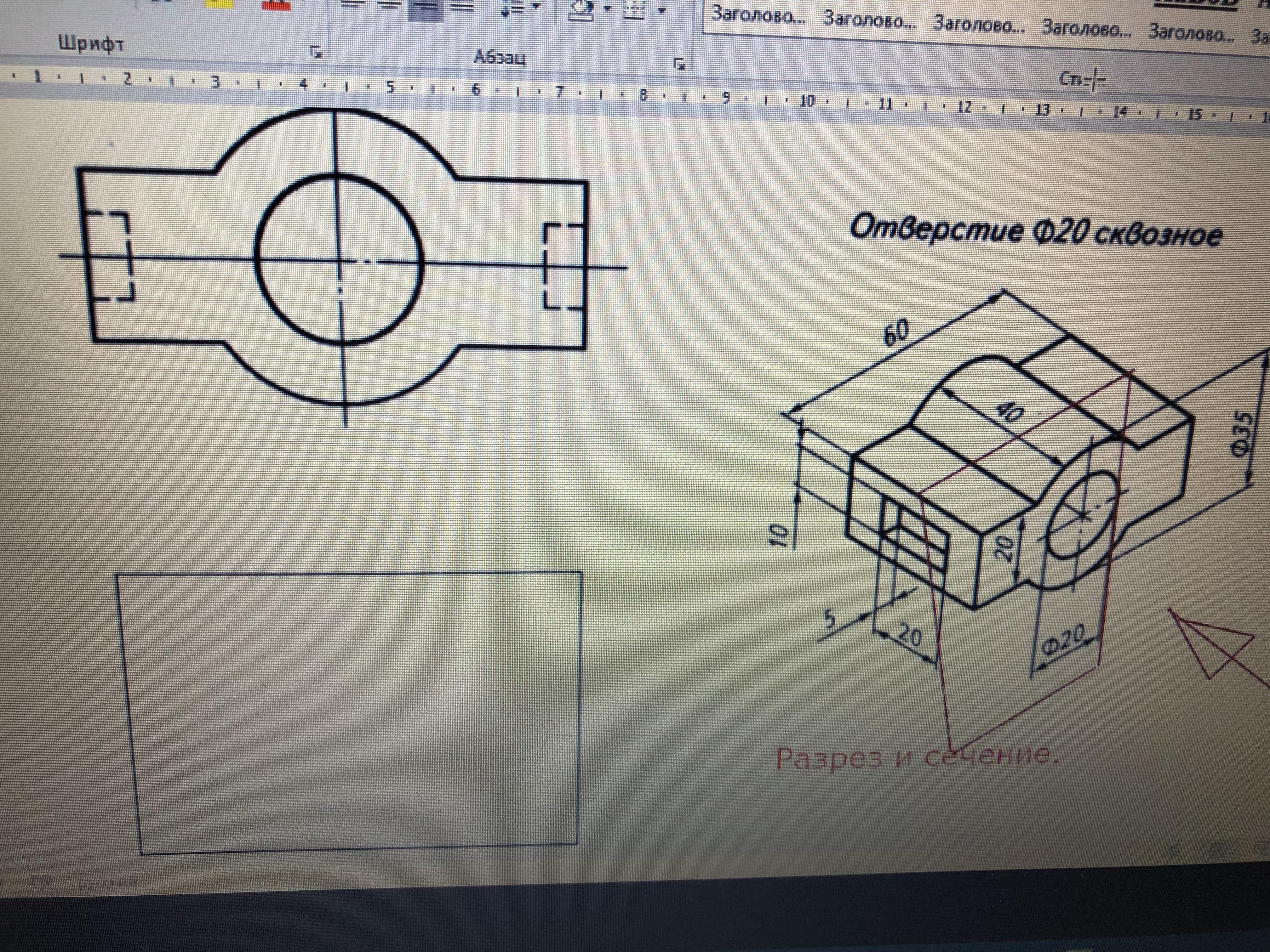 Главный вид заменила на фронтальный разрез, а вид сверху - горизонтальным разрезом - ВЫБИРАЙТЕ.