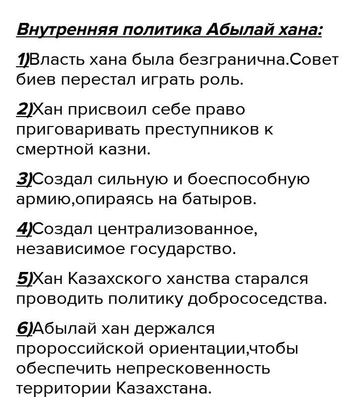1) Вся внутриполитическая деятельность Абылая была направлена на образовании независимого государства.