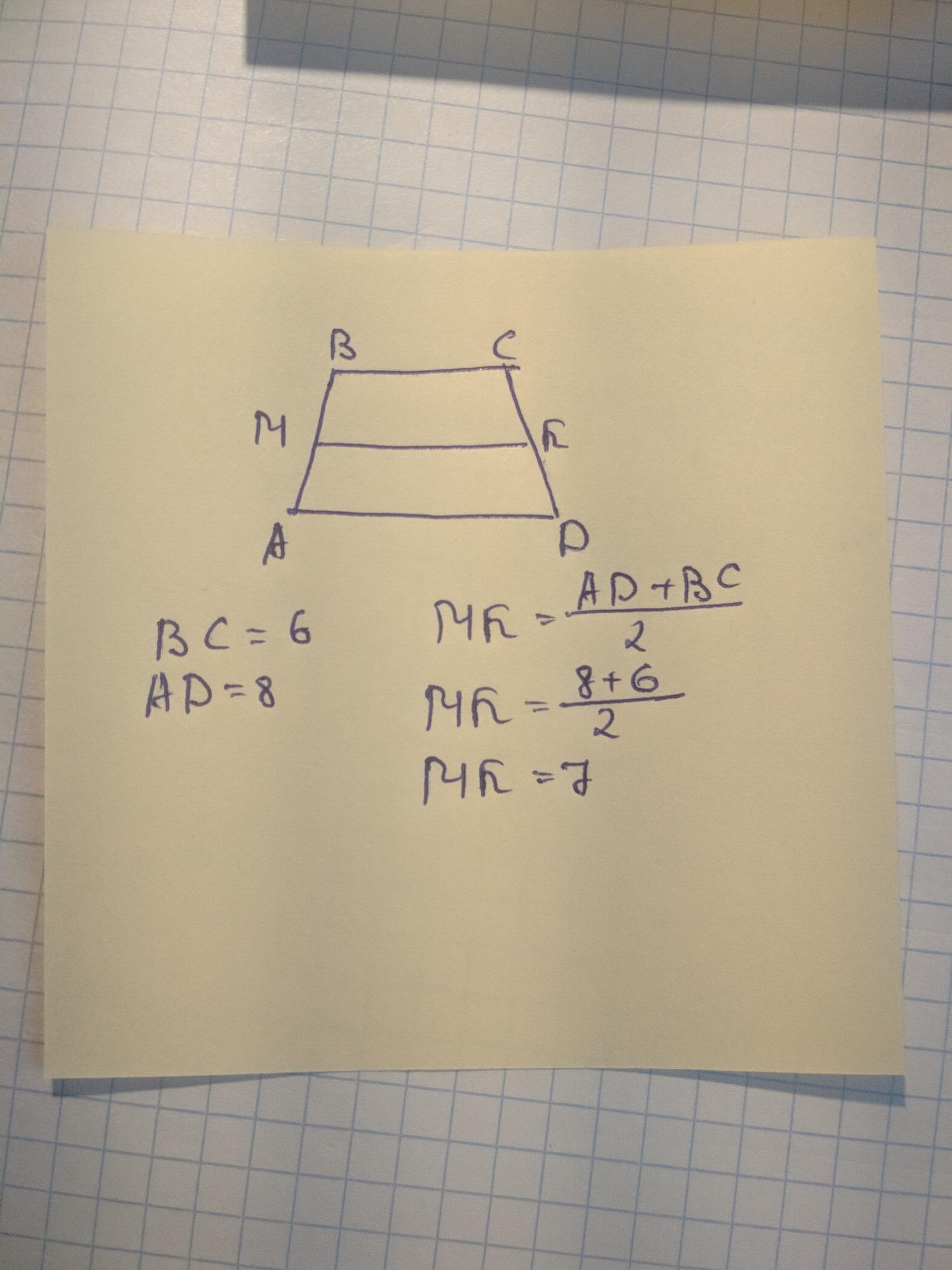 Основания трапеции равны 6 и 8 найдите её среднюю линию..
