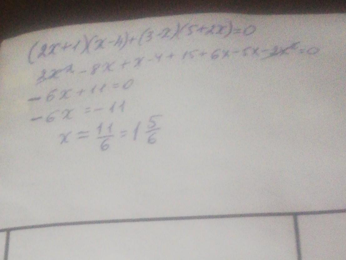 (2x+1)(x-4)+(3-x)(5+2x)=0
