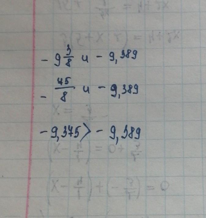 Ответ: приводим обе дроби к десятичным, тогда -9 3/8=-9,375> - 9,389.