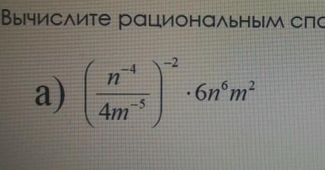 (n^(-4)/4m^(-5)^(-2) * 6n^6m^2= (4m^(-5)/n^(-4))^2 * 6n^6m^2=