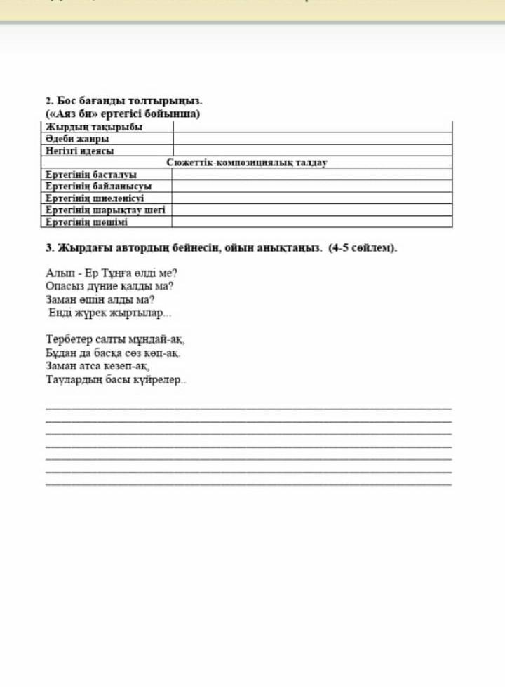 Бұл жырдағы автордың ойы : алып ертұңғаның өлгеніне өкінуі, дүниенің опасыз екеніне,заманның өшін алғанынан, өмірдің қатал екеніне көңіліңіз түсуі.