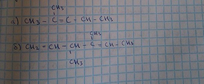 б) CH2=CH-CH(CH3)-C(CH3)=CH-CH2-CH3