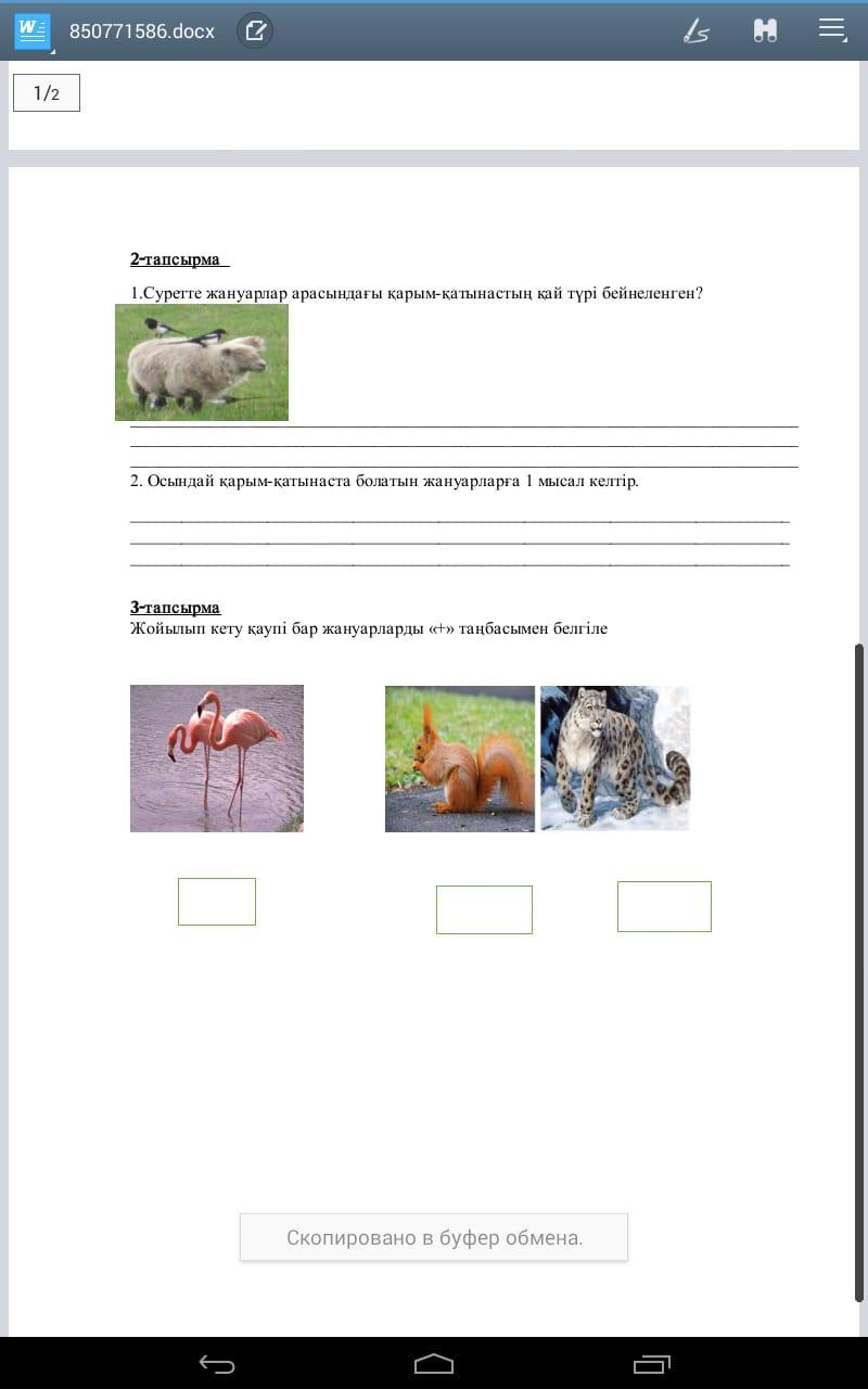 1) 1 симбиоз 2) сиыр мен құс 3) 1 сурет + 2 сурет - 3 сурет +