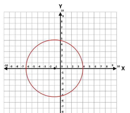 1. Запишите уравнение окружности, с центром в точке А и радиусом R, если А(–1; 0), R=5. Здесь x₀ = –1, y₀ = 0, R = 5:
