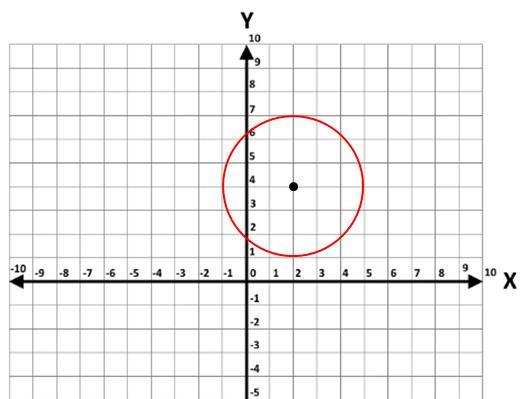 1. Запишите уравнение окружности, с центром в точке А и радиусом R, если А(2; 4), R=3. Здесь x₀ = 2, y₀ = 4, R = 3: