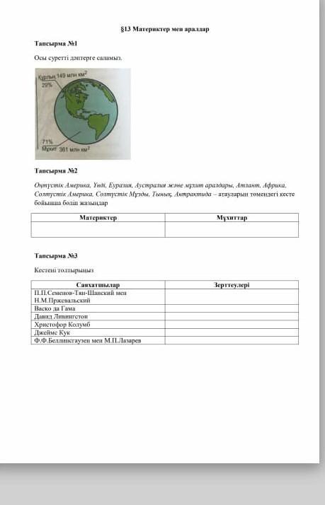 Мұхиттар:Үнді, Атлант, Солтүстік Мұзды, Антрактида.