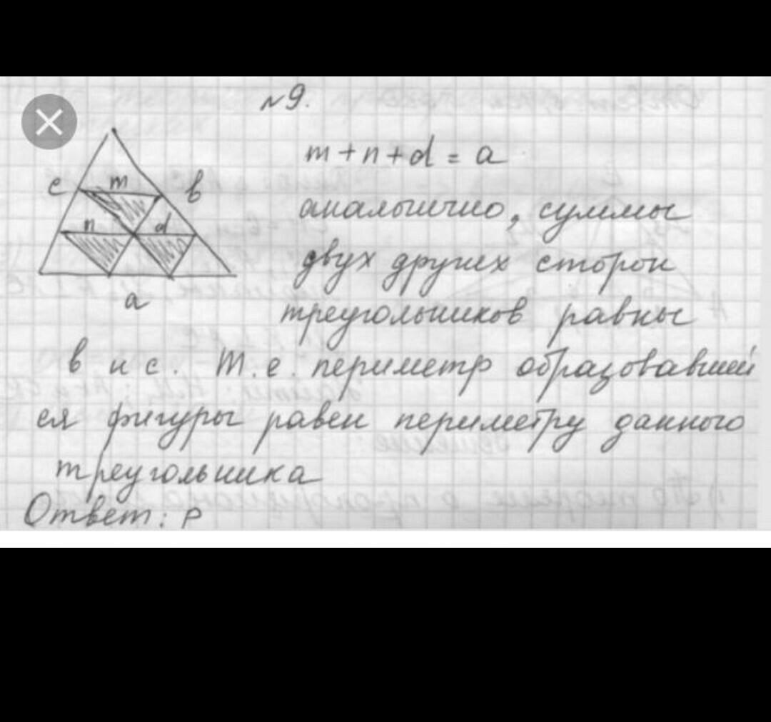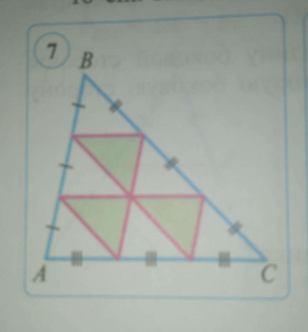 каждая из сторон треугольника ABCD разделено на три равных отрезка и точки деления соединены отрезками Найдите периметр образовавшегося при этом фигур рисунок номер семь если периметр исходного треугольника равен P