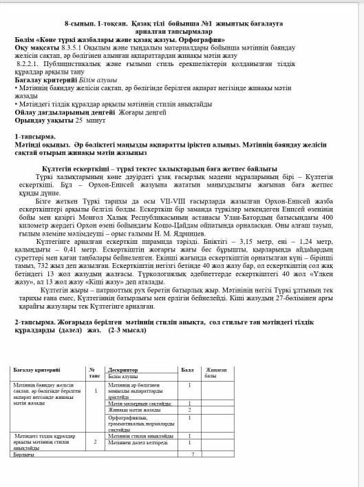 мәтінді оқыныз. әр бөліктегі маңызды ақпарат іріктеп алыныз. мәтіннің баяндау желісін сақтай отырып жинақы мәтін жазыныз.