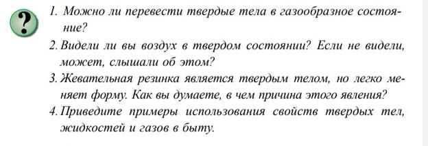 4. Детали машин изготавливают из твердых тел для того, чтобы они сохраняли свою форму. Свойство жидкости изменять свою форму используют, например, в системе центрального отопления, свойство газов легко сжиматься используют в двигателе внутреннего сгорания.