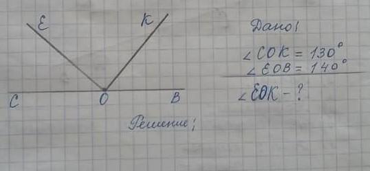2). 140°(угол ЕОВ)-50°=90° ЭТО И ЕСТЬ УГОЛ ЕОК