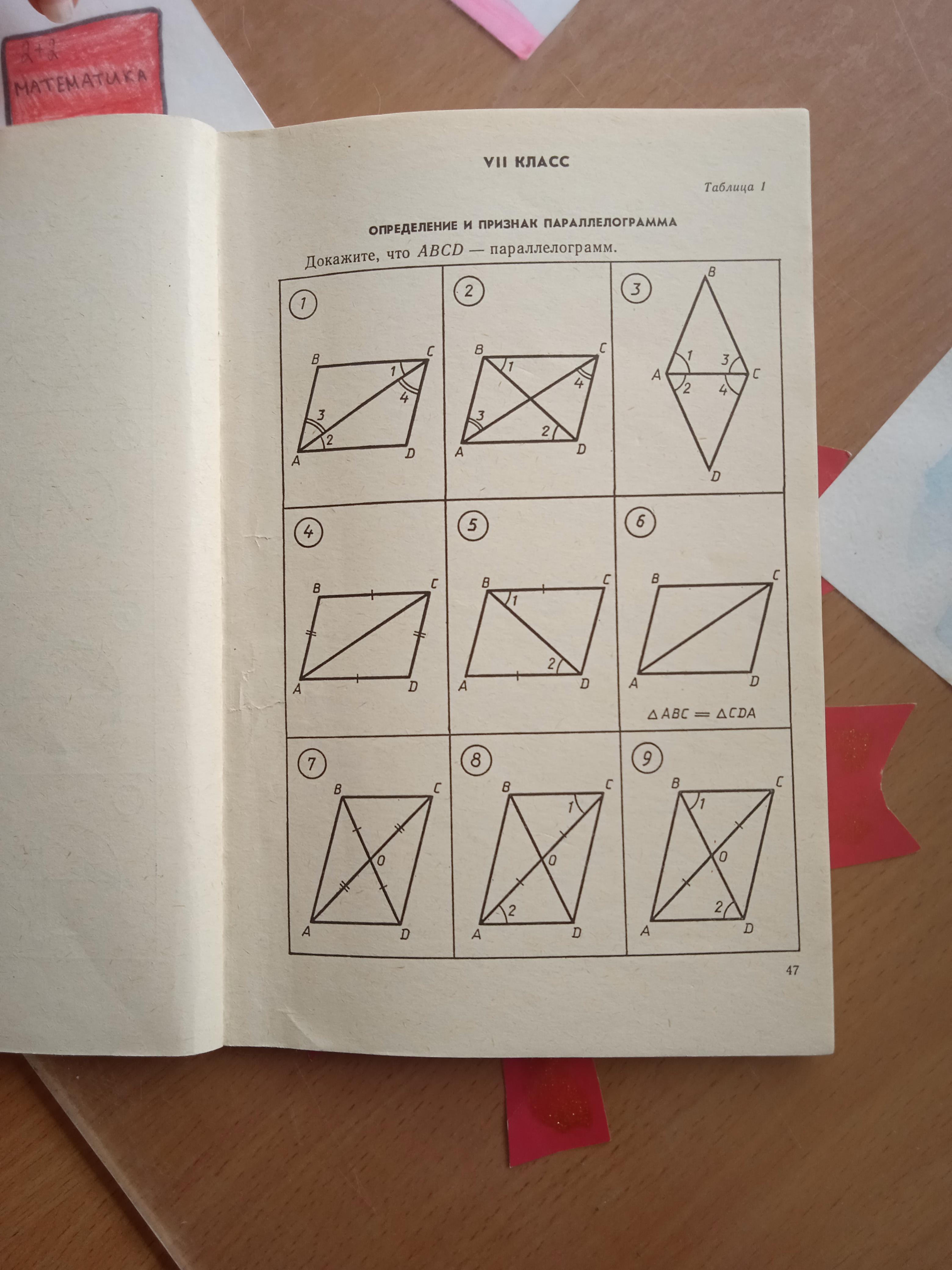 - Признак: "Если в четырехугольнике две противоположные стороны равны и параллельны, то этот четырехугольник — параллелограмм".