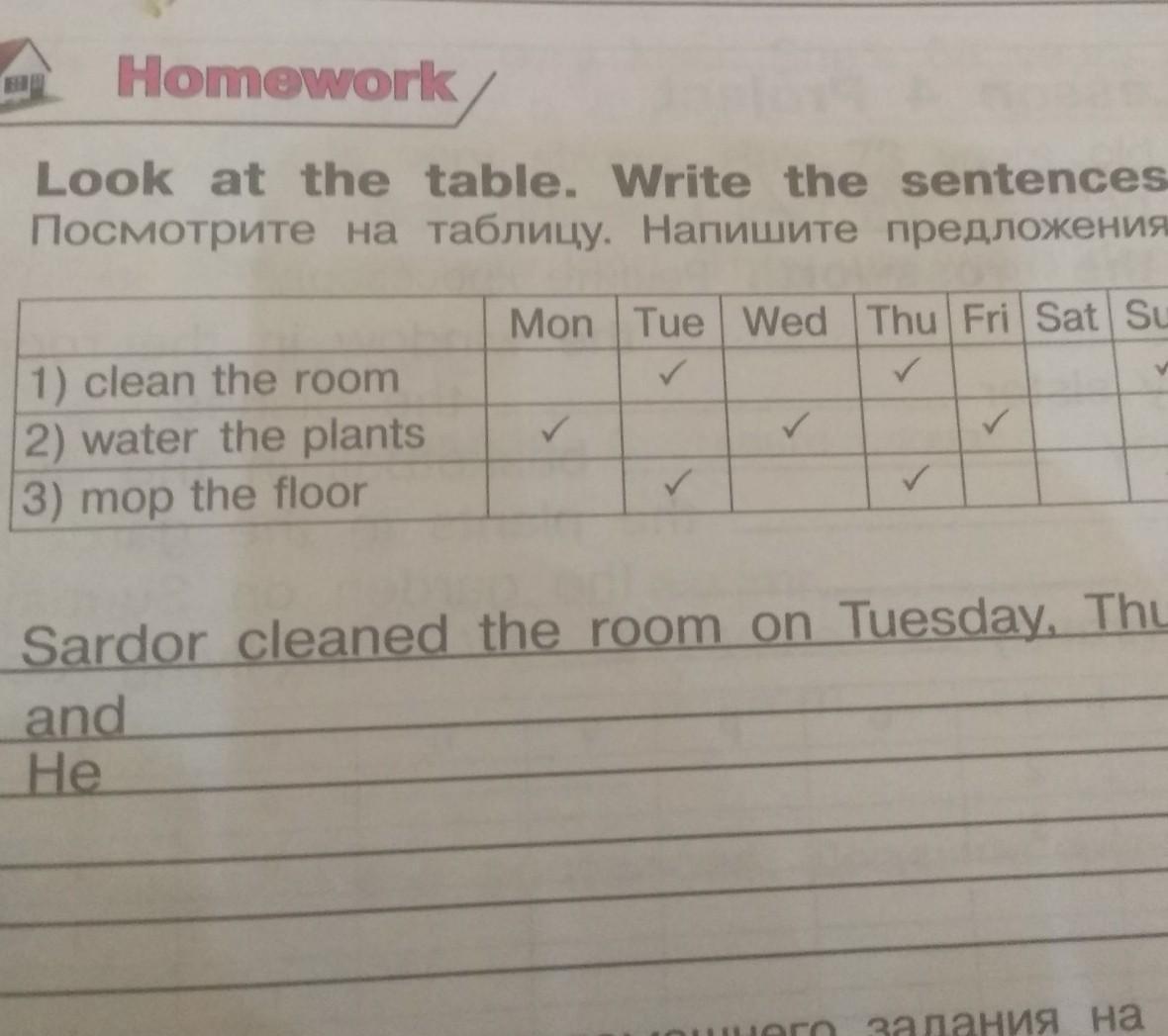 3)Sardor moped the floor on Tuesday, Thursday and... (не вижу, где ещё галочка)