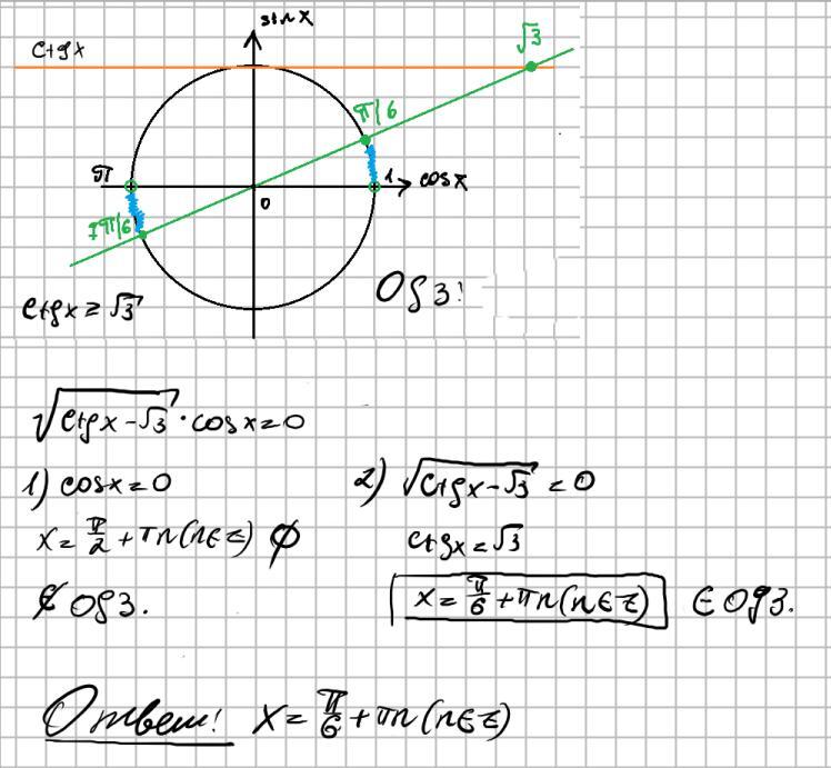 Однако, если cos(x)=0 , то ctg(x)=0 и подкоренное выражение отрицательно, значит решения не подходят по ОДЗ.
