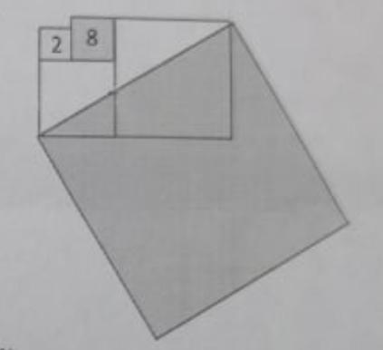 2√2+3√2=5√5 Значит это катет серого трейугольника отрезаемого стороной последнего квадрата от двух предыдущих. Второй катет состоит из суммы сторон третьего и четвертого квадратов.