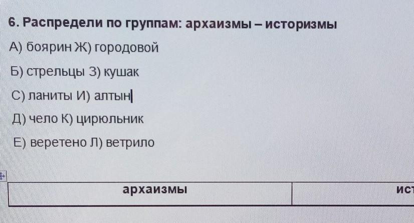 Историзмы: боярин, городовой, стрельцы, алтын, веретено.