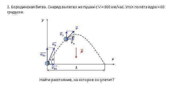 Начальная скорость умноженная на синус 60-это вертикальная состовляющая(проекция на ось У) умноженная на синус 60 - это проекция скорости на ось Х,косинус 60 = 0,5 значит горизонтальная состовляющая равна 400м/с. А вертикальная - 692,82м/с
