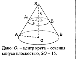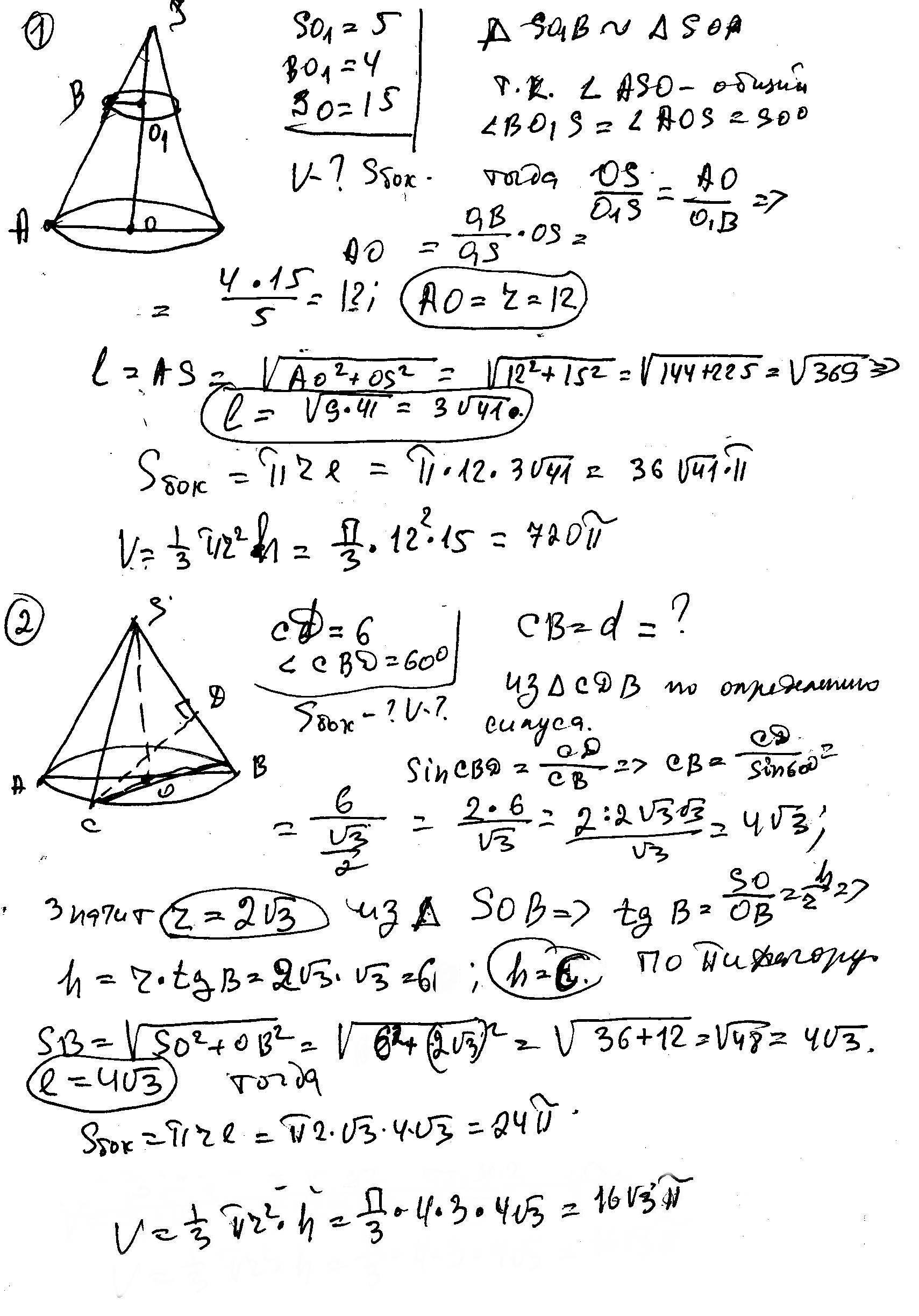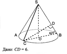 SO - высота конуса. Найдите объем и площадь боковой поверхности конуса.
