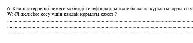 компьютер немесе мобильді телефондарды басқа да құрылғыларды сымсыз Wi-Fi желісіне қосу үшін керек құрылғы антенна және Модем.
