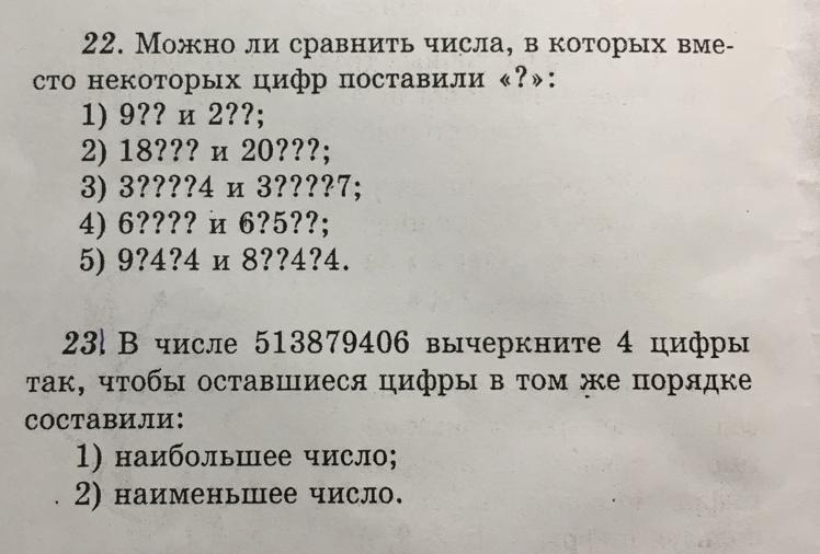 23) 1) вычеркните 4 наименьшие цифры и получите наибольшее 58796,