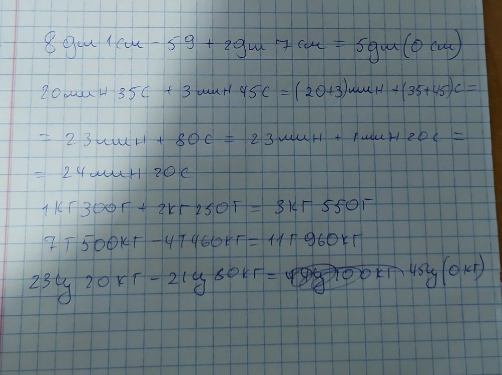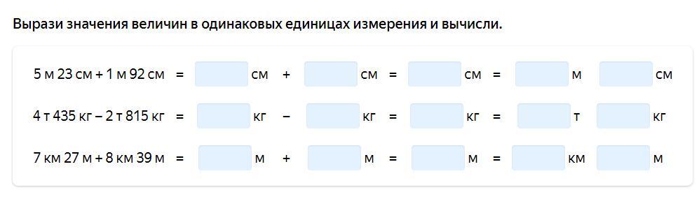 2) вырази значения величин в одинаковых единицах измерения и вычисли.