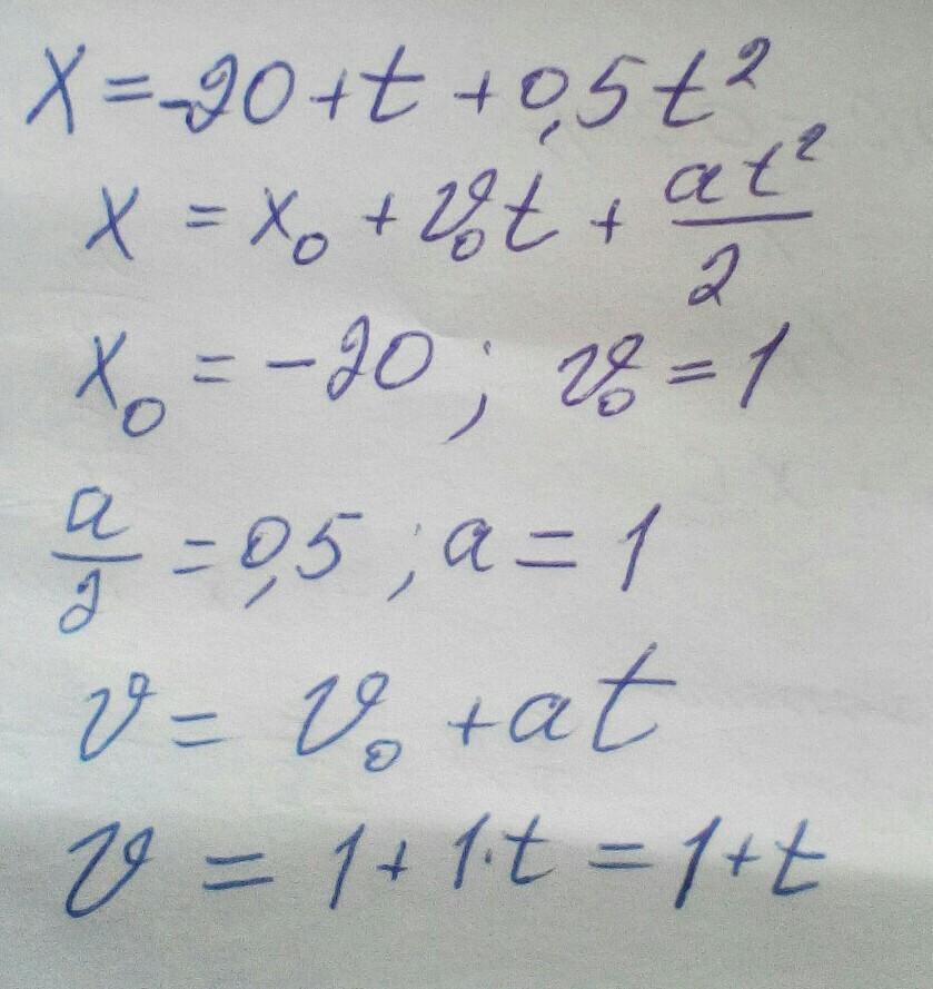рівняння руху тіла виглядить x=-20+t+0,5t2
