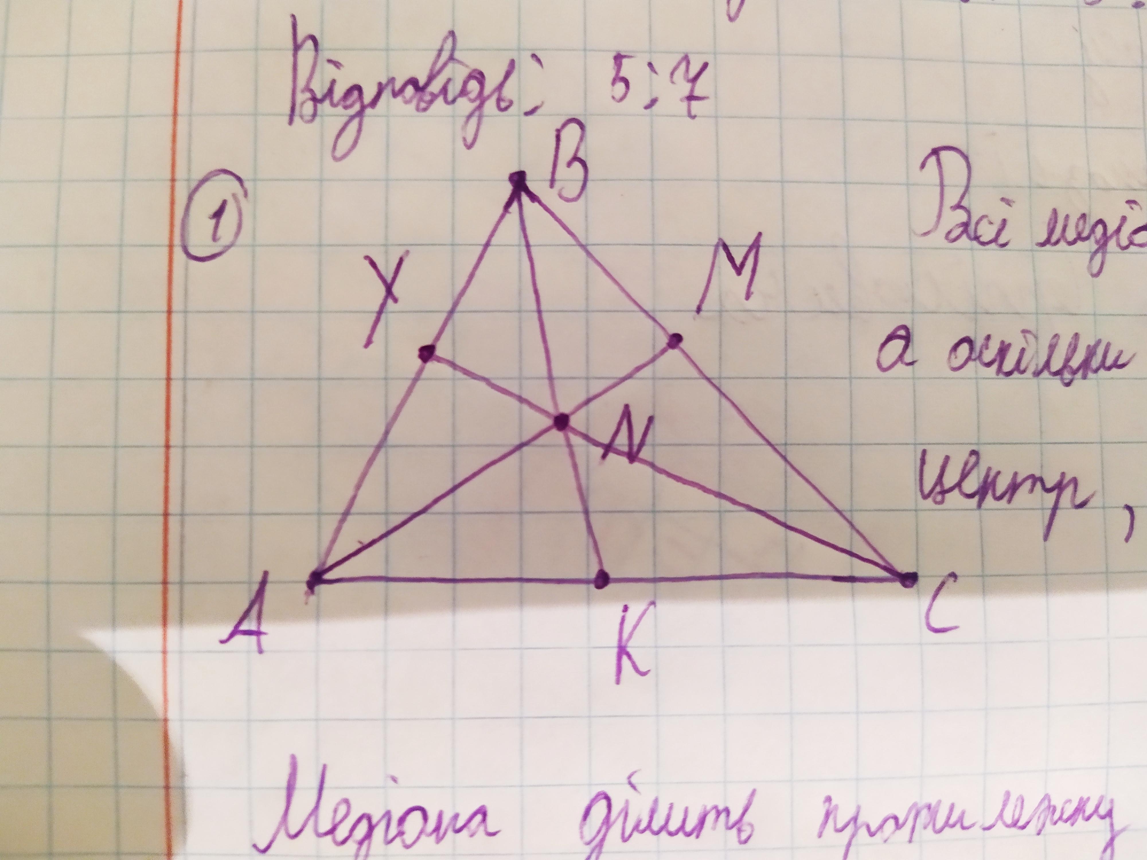 За правилом, все медианы пересекаются в одной точке (в нашем случае - точка N)