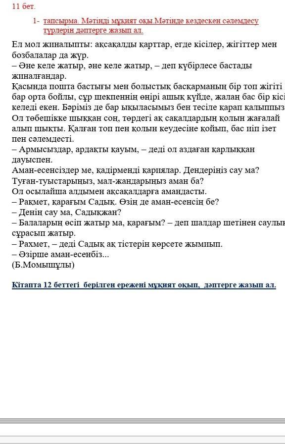 помагитее пожалуйста мәтінен буын үндестігіне бағынбай тұрған сөздерді тап және сәлемдесу түрлерін жазу 12 балл