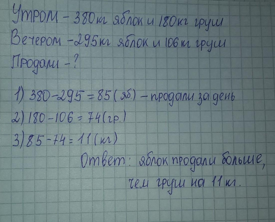Утром в магазине было 380 кг яблок и 180 кг груш.