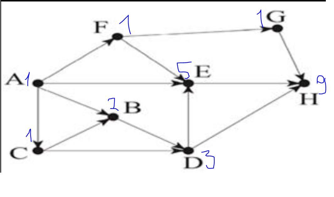 На рисунке – схема дорог, связывающих города A, B, C, D, E, F, G и H. По каждой дороге можно двигаться только в одном направлении, указанном стрелкой. Сколько существует различных путей из города A в город H?