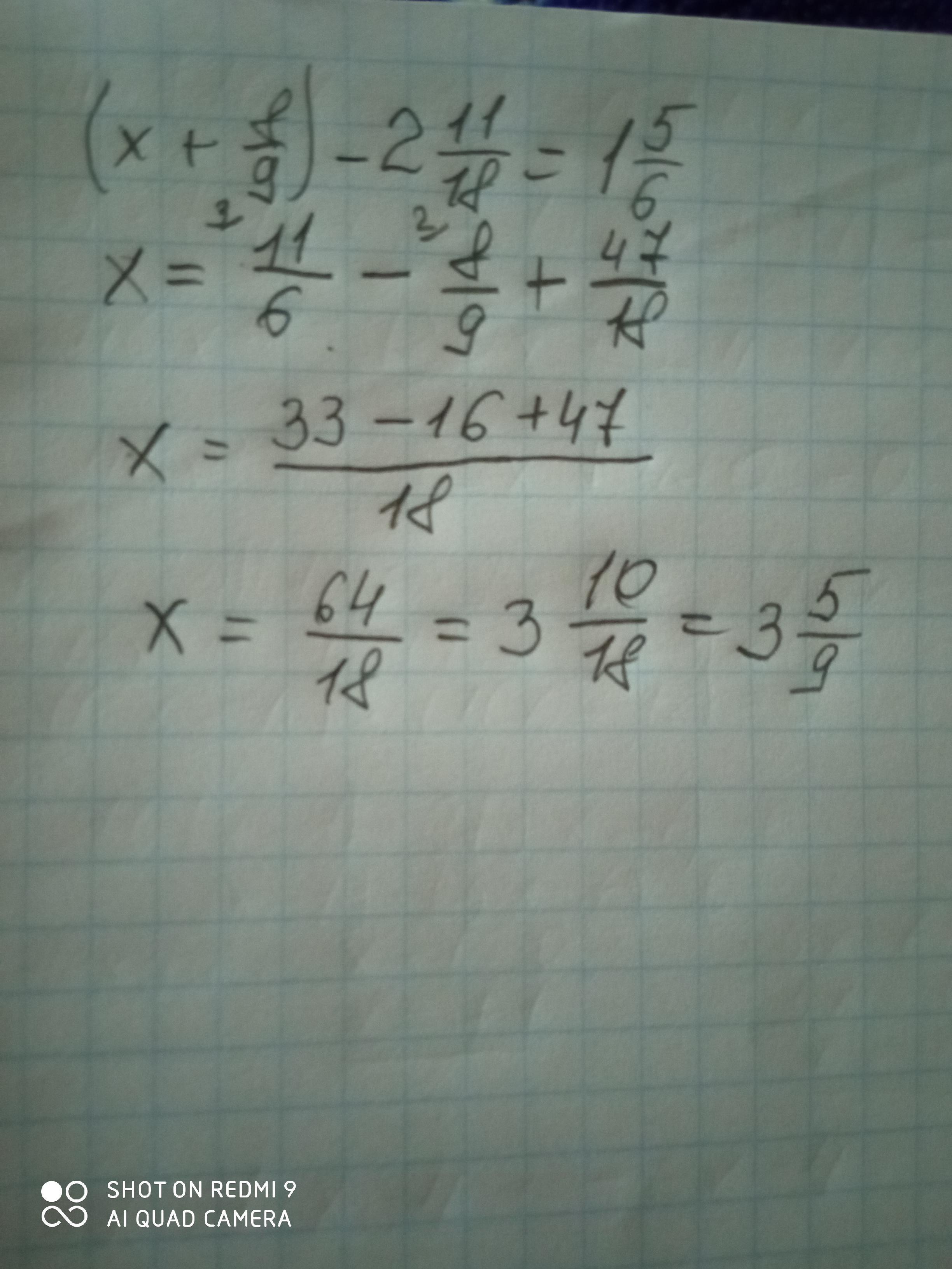 а) (х + 8/9) - 2 11/8 = 1 5/6
