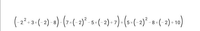 (-2^2+3*(-2)-8)-(7*(-2)^2-5*(-2)+7)+(5*(-2)^2-8*(-2)+10) очень срочно дам 100 баллов