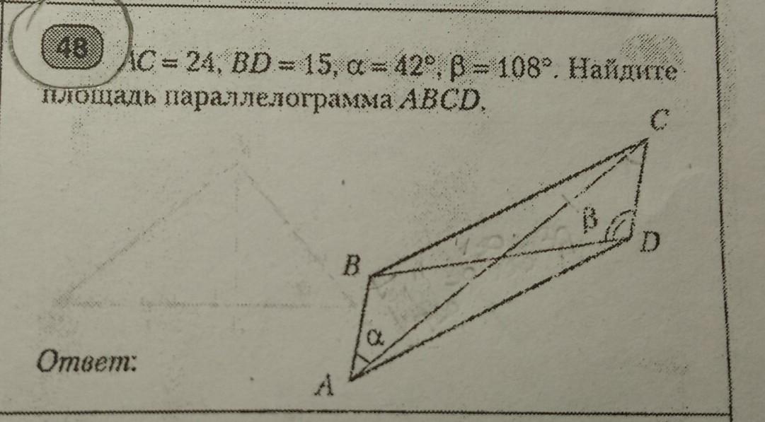 Т.к. , то площадь параллелограмма равняется четверти произведения диагоналей: