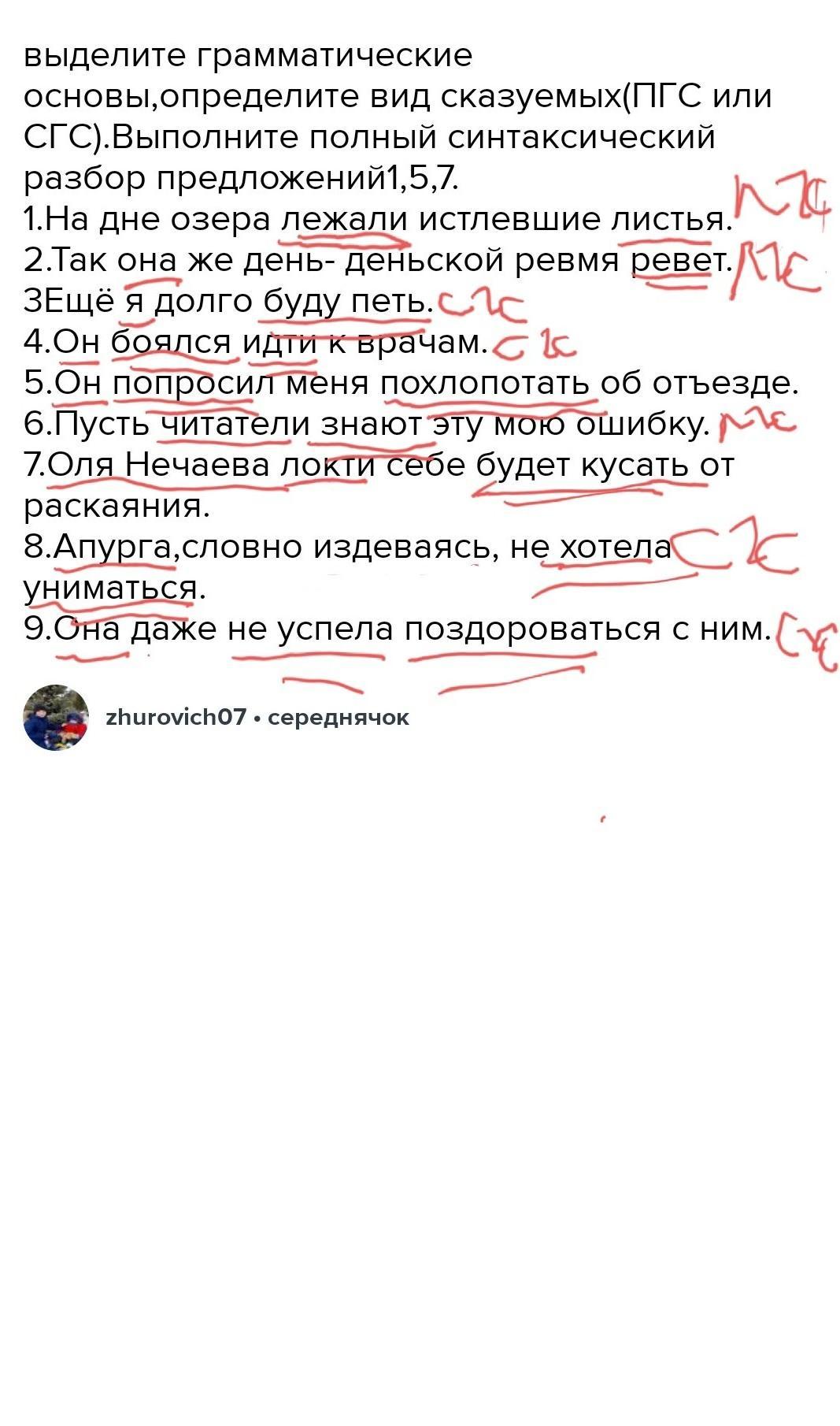 выделите грамматические основы,определите вид сказуемых(ПГС или СГС).Выполните полный синтаксический разбор предложений1,5,7.