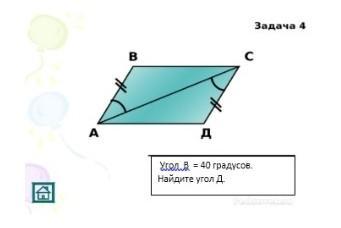Следовательно угол В= углу D=40градусов