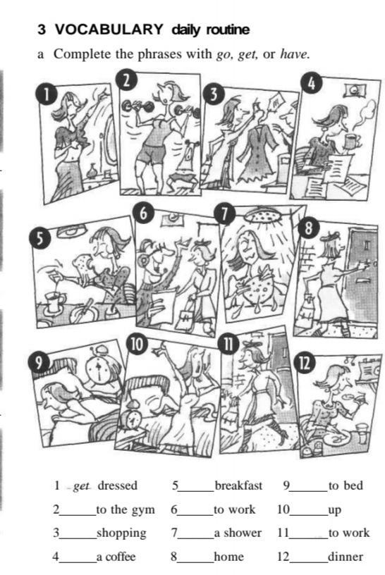 12. have dinner - обедать (или ужинать - зависит от времени)
