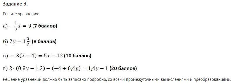 Решение уравнений должно быть записано подробно, со всеми промежуточными вычислениями и преобразованиями.