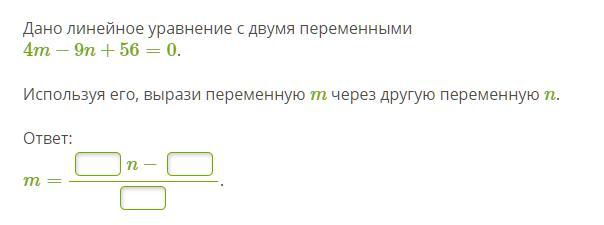 4m - 9n + 56 = 0 \\ 4m - 9n =  - 56 \\ 4m =  - 56 + 9n \\ 4m =  9n - 56 \\ m =  \frac{9n - 56}{4}
