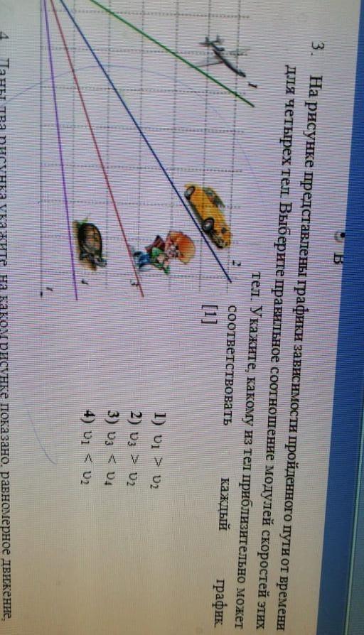 Верное соотношение модулей скоростей тел: V1>V2>V3>V4